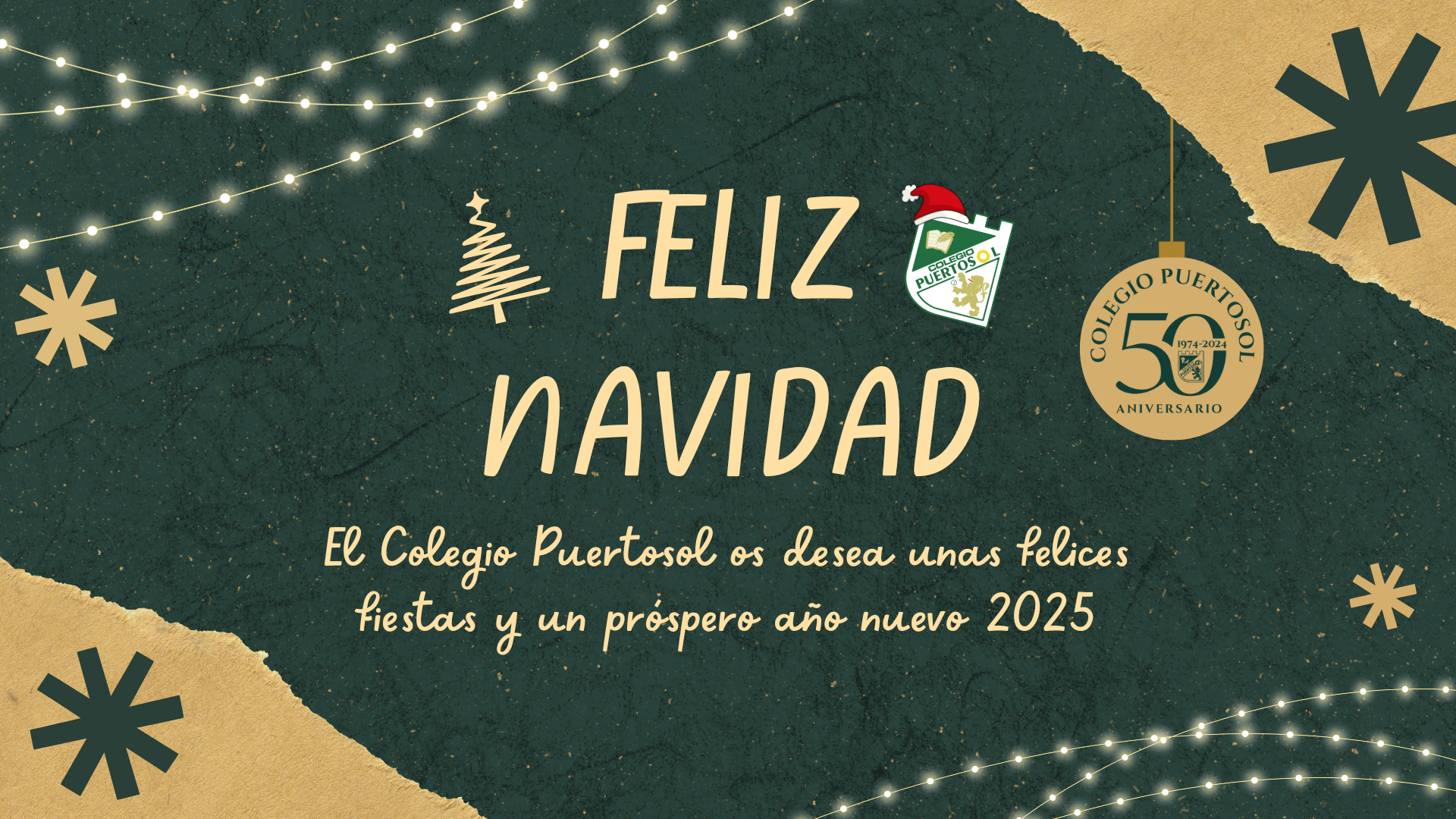 Desde la comunidad educativa del Colegio Puertosol os deseamos unas felices fiestas y un próspero 2025.